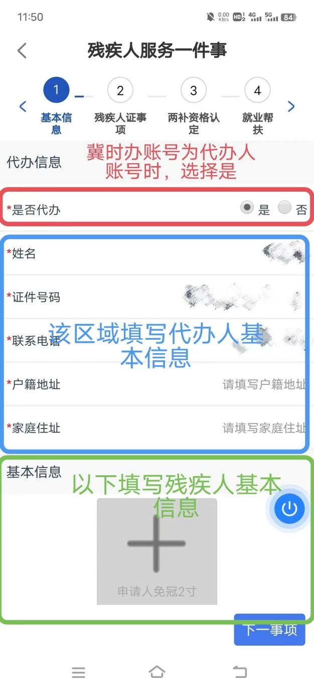 三、居民户口本主页一栏,上传残疾人所在户口本首页;