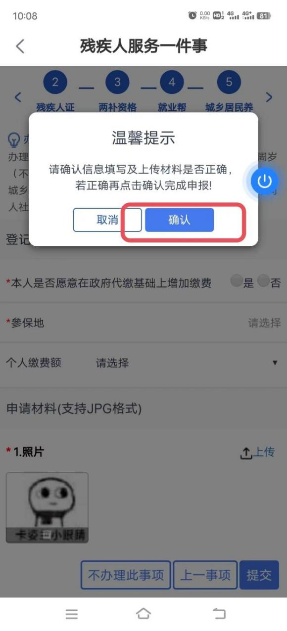 四、居民户口本本人页一栏,上传残疾人户口本本人页。