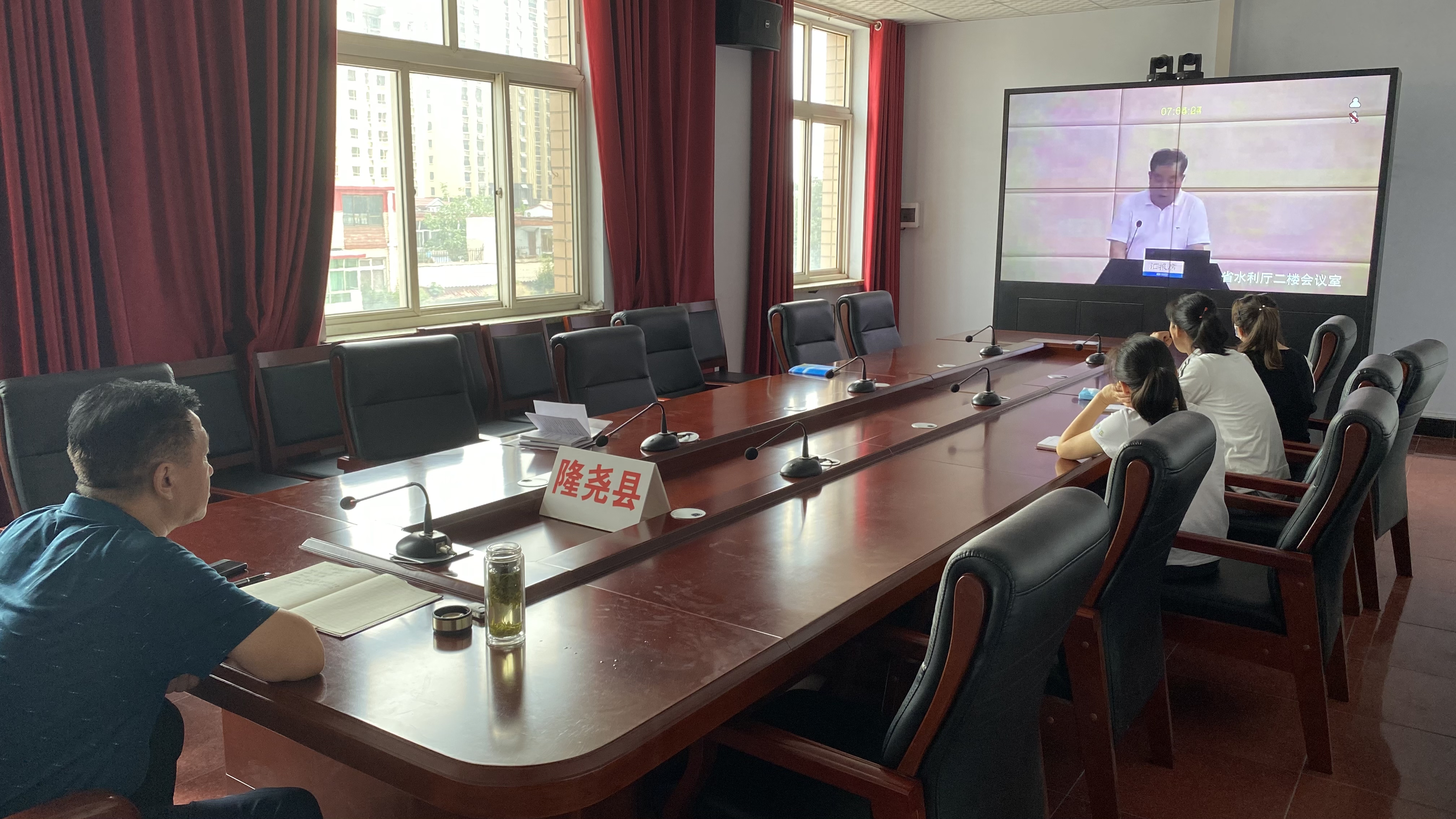 7月7日下午,田振国局长和防汛办工作人员在水务局三楼会议室,参加收听收看省水利厅召开的防汛关键期水旱灾害防御工作视频会议。