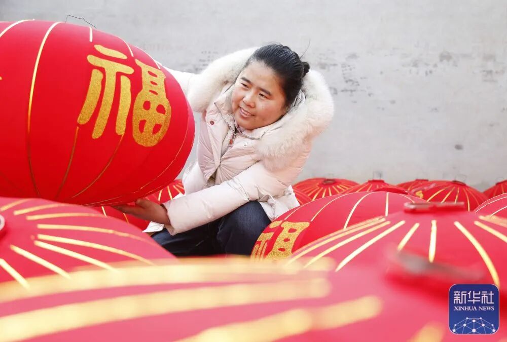 新年临近,河北省邢台市南和区的灯笼作坊加紧制做红灯笼,供应节日市场。