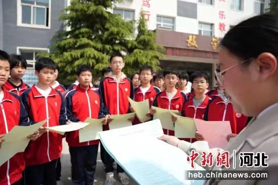 图为河北省隆尧县实验中学,司法部门专家在为学生解答国家安全相关问题。张玲玲 摄