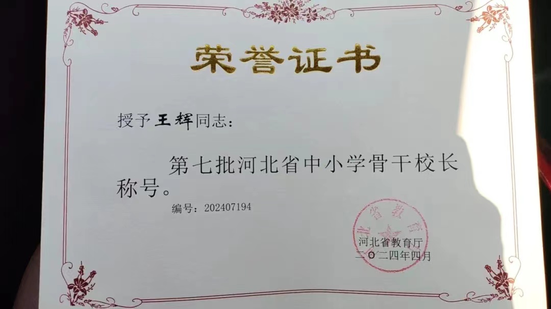 近日,河北省教育厅印发《关于授予阎保华等248名同志河北省中小学骨干校长称号的通知》,隆尧县尧山中学党支部书记、校长王辉名列其中,被授予河北省中小学骨干校长称号。