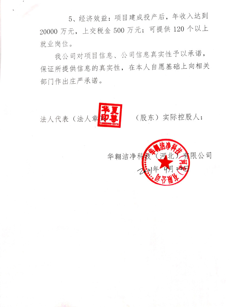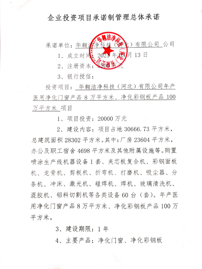附件:1、华翱洁净科技(河北)有限公司总体承诺书