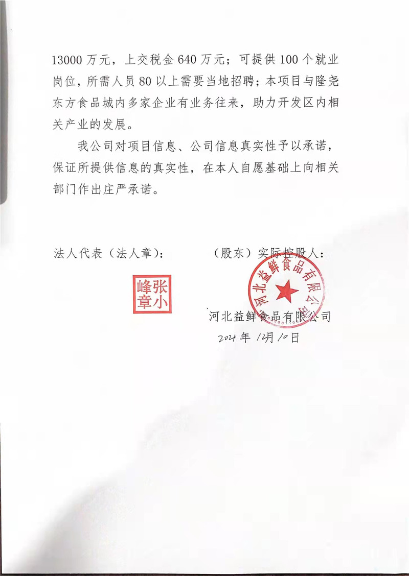 附件:1、河北益鲜食品有限公司总体承诺书