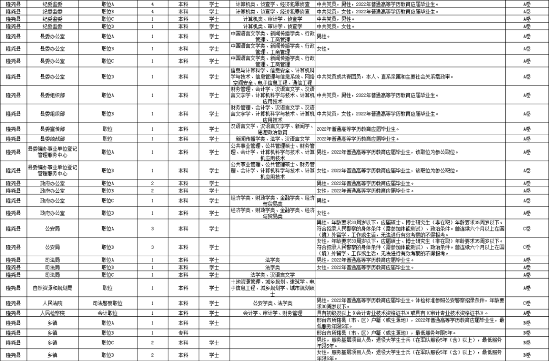 2022年度河北省公务员录用省市县乡四级联考 隆尧招聘岗位