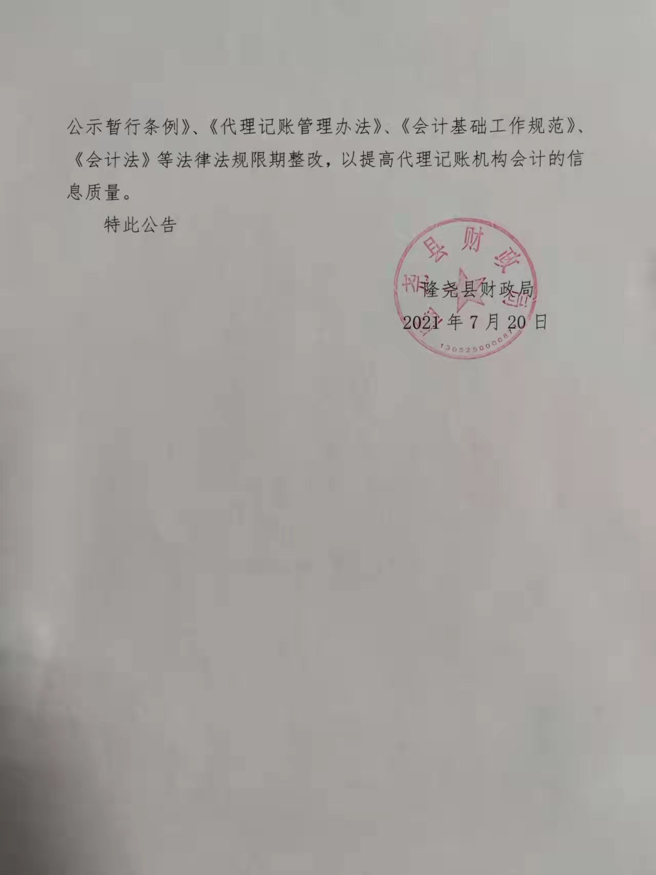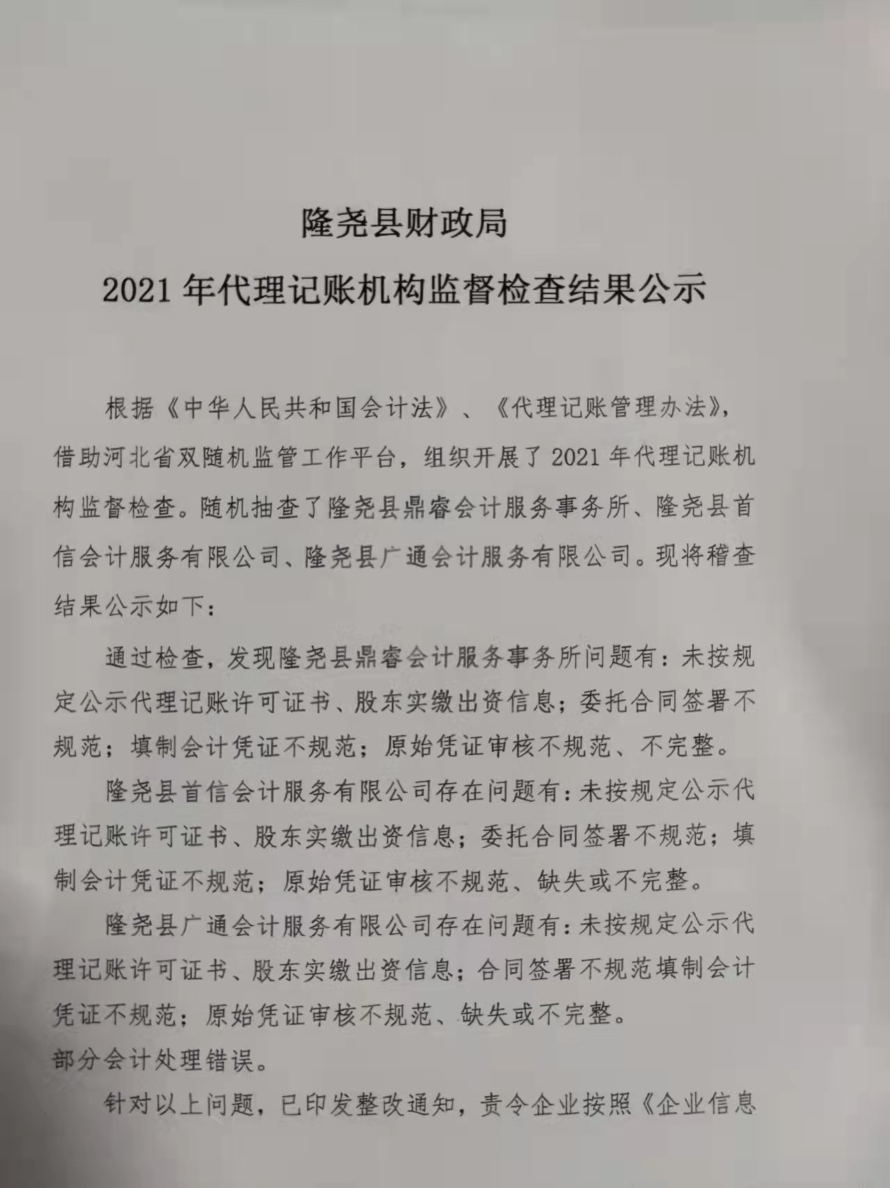 隆尧县财政局2021年代理记账机构监督检查结果公示2.jpg